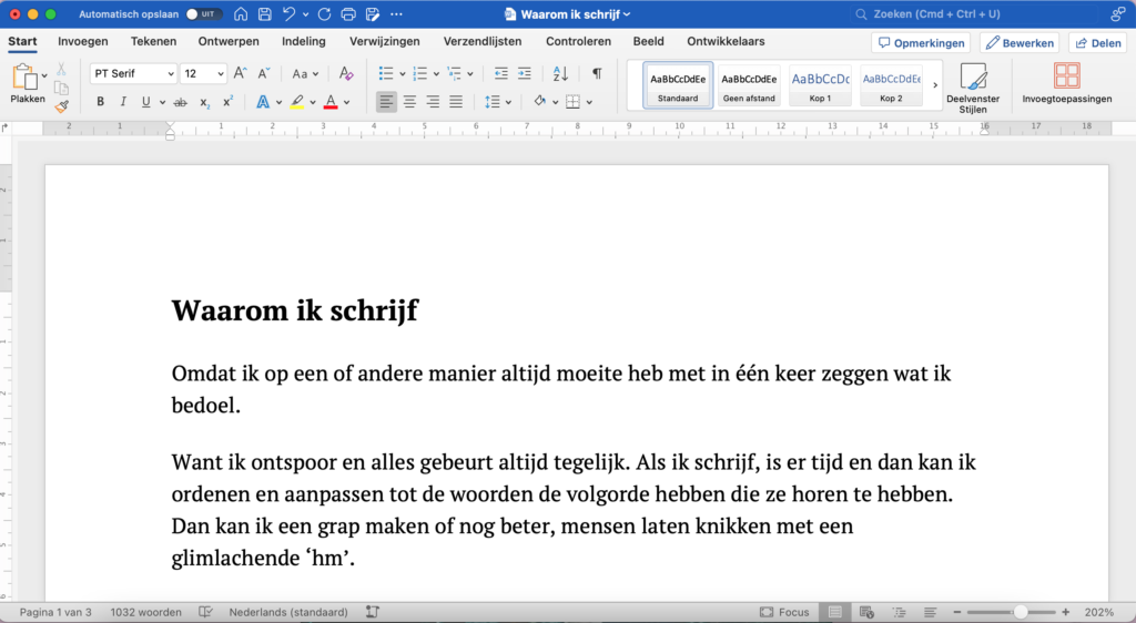 “Als je een verhaal schrijft, laat je altijd wat weg. Dat begint al bij het begin. ‘Op een dag’ begint het, en niet de dag daarvoor.”